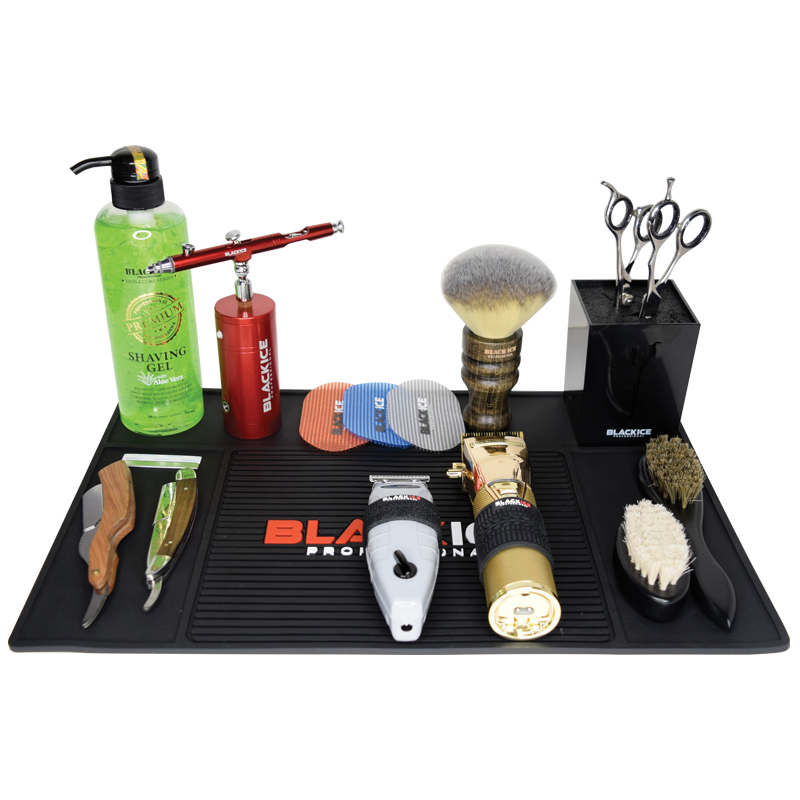 Smooth, rubber mat protects counters and workstations. Helps to keep barber accessories organized and looking professional.