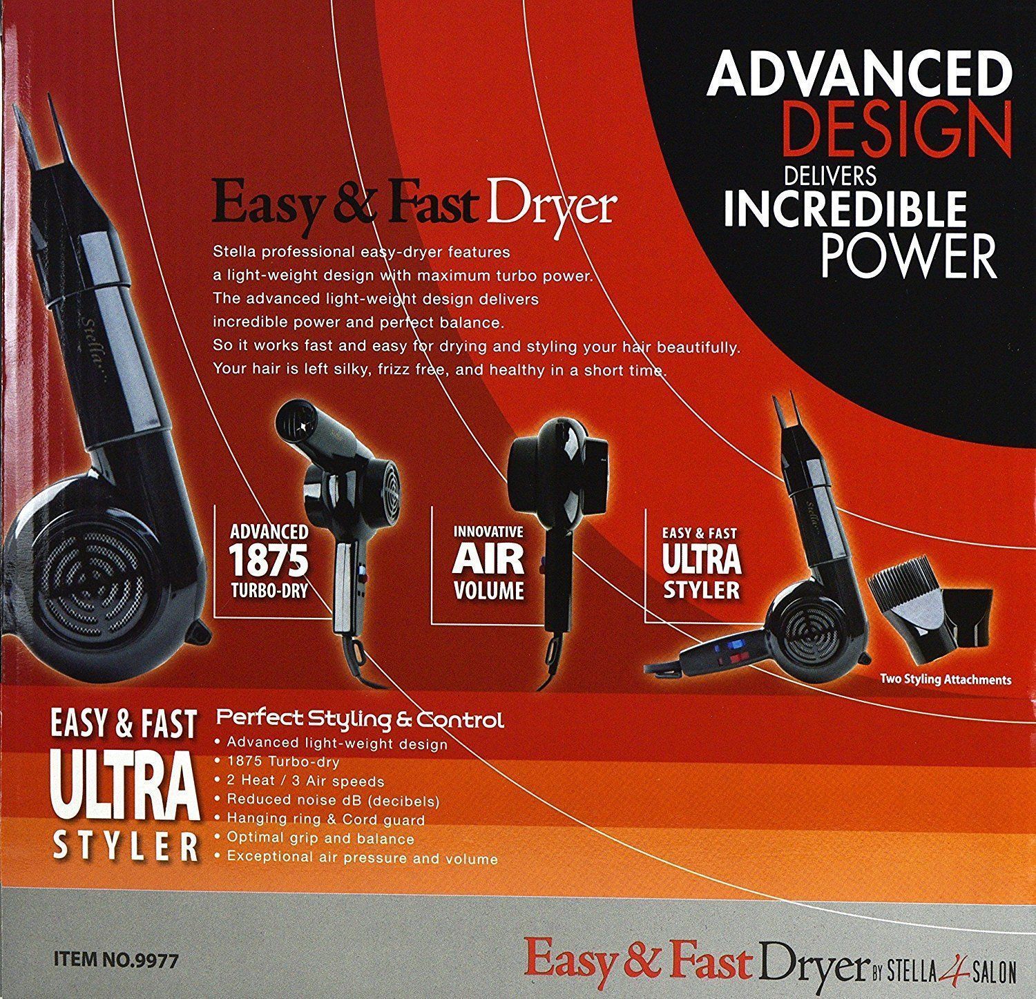 Stella professional easy-dryer features a light-weight design with maximum turbo power. The advanced light-weight design delivers incredible power and perfect balance. So it works fast and easy for drying and styling your hair beautifully. Your hair is left silky, frizz free, and healthy in a short time.