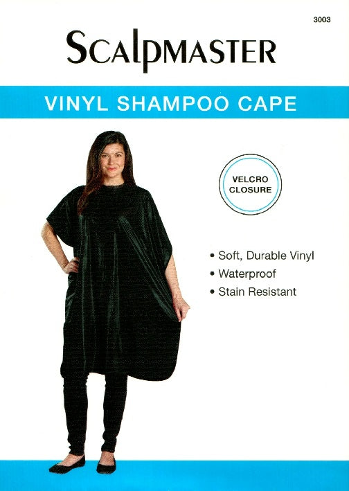 Vinyl Shampoo Cape 54" x 36". Velcro neck closure. Black.
